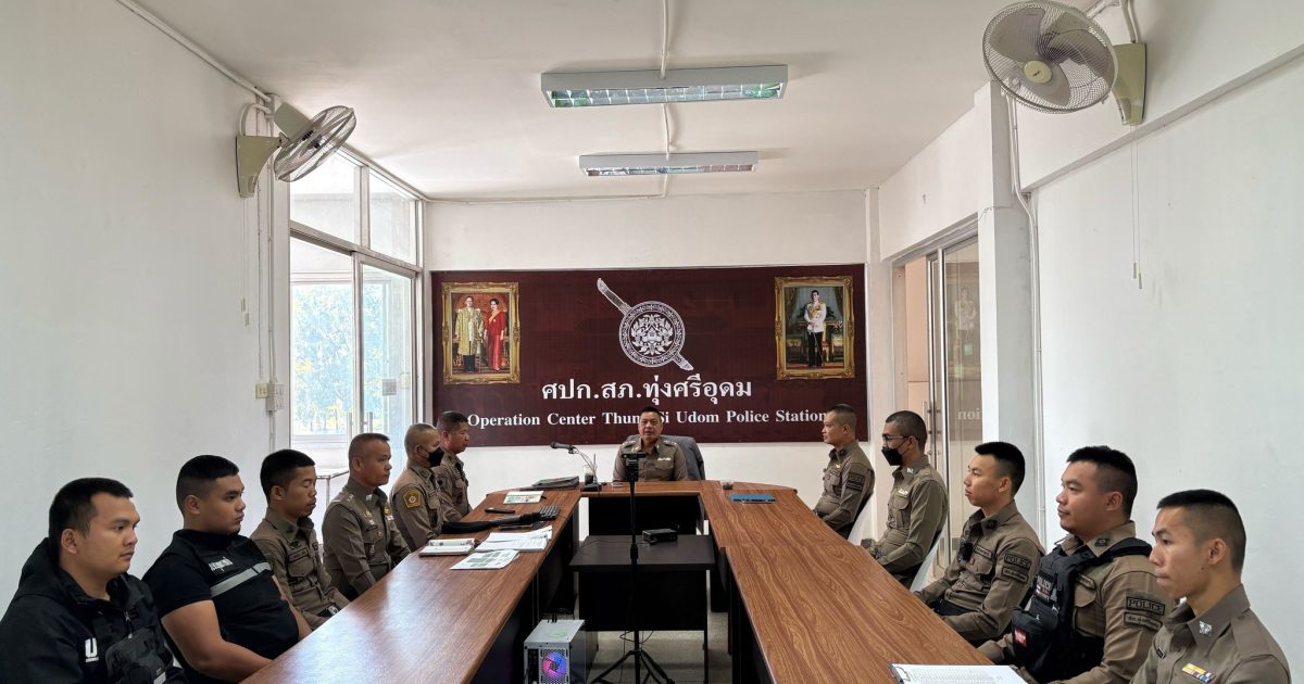 วันที่ 24 ธ.ค.2567 เวลา 09.00 น. พ.ต.อ.สายชล ปัญจชัย ผกก.สภ.ทุ่งศรีอุดม พ.ต.ท.ธานนท์ เทพคำราม รอง ผกก.(สอบสวน)สภ.ทุ่งศรีอุดม พร้อมด้วย พ.ต.ท.สุระเมษฐ์ คำมะลุนพัฒนะกูล รอง ผกก.ป.ฯ พ.ต.ท.ทศพล จำเริญกุล สว.สส.ฯ พ.ต.ต.ธวัชชัย ประสมพันธ์ สวป.ฯ เเละ ข้าราชการตำรวจชั้นสัญญาบัตร