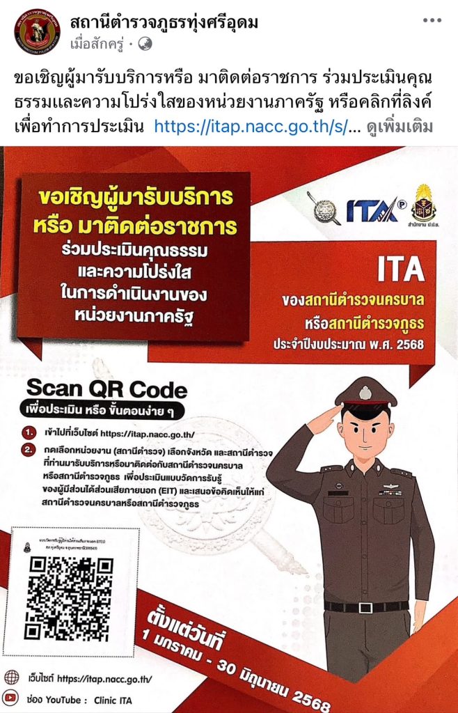สถานีตำรวจภูธรทุ่งศรีอุดม แต่งตั้งคณะกรรมการดำเนินการในการขับเคลื่อนและกำกับติดตามการประเมินคุณธรรมและ ความโปร่งใสในการดำเนินงานของหน่วยงานภาครัฐ (Integrity and Transparency Assessment: ITA) ของสถานีตำรวจ ประจำปีงบประมาณ พ.ศ. 2568 โดยมี พันตำรวจเอก สายชล ปัญจชัย ผู้กำกับการสถานีตำรวจภูธรทุ่งศรีอุดม เป็นประธานกรรมการ ดำเนินการตามคู่มือการประเมินคุณธรรมและความความโปร่งใสในการดำเนินงานของหน่วยงานภาครัฐ (Integrity and Transparency Assessment: ITA) ของสถานีตำรวจ ประจำปีงบประมาณ พ.ศ. 2568